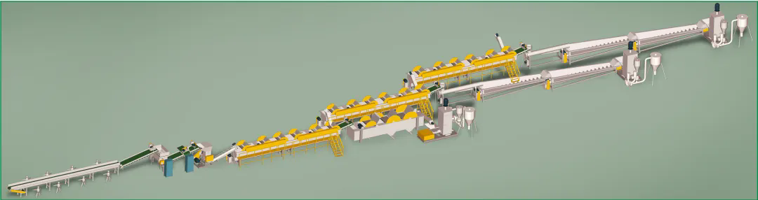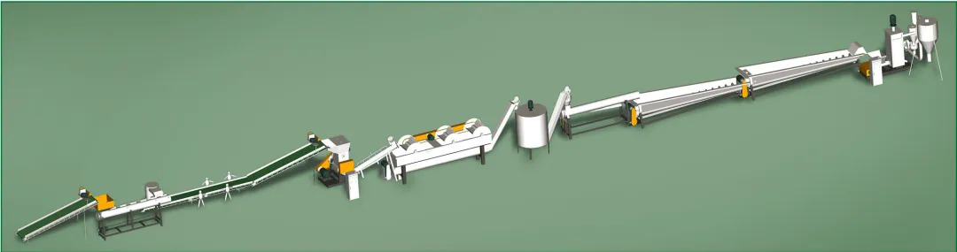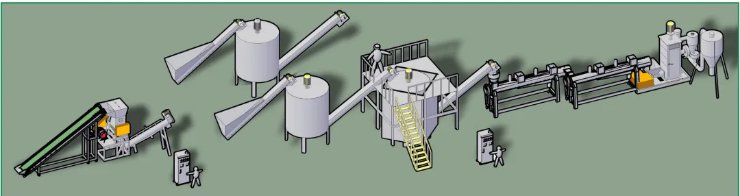 柯達(dá)機(jī)械制造各類型再生塑料全套破碎清洗分離生產(chǎn)線,與Toplun(菲律賓)、KSI(馬來(lái)西亞)、泉源塑膠(印尼)、新華泰(泰國(guó))、海鹽海利等PET再生利用大型生產(chǎn)廠家合作,大部分客戶清洗的PET切片均對(duì)接Adidas,Nike等世界知名企業(yè),柯達(dá)機(jī)械PET工藝略異于市場(chǎng)生產(chǎn)線,多出市場(chǎng)上的冷熱預(yù)洗及堿洗后增加酸性中和清洗,在整個(gè)工藝中務(wù)求減少PET切片的刮痕損傷,降低粉末損耗率,快速酸性中和保固PET成品料粘度。每個(gè)工序點(diǎn)都為生產(chǎn)出高粘度,低損耗PET成品而設(shè)計(jì)。