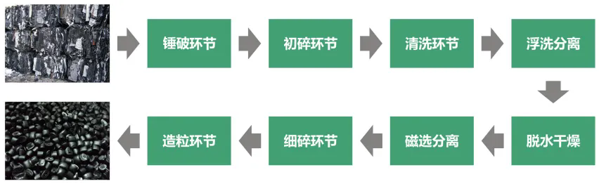 整套設(shè)備從拆包到破碎-清洗-除紙-除橡膠-干燥-分離瓶嘴料均可全自動(dòng)化流水生產(chǎn)。生產(chǎn)出來(lái)的成品顆?;具_(dá)到了新料的品質(zhì),廣泛用于注塑擠出、加工造粒等領(lǐng)域。